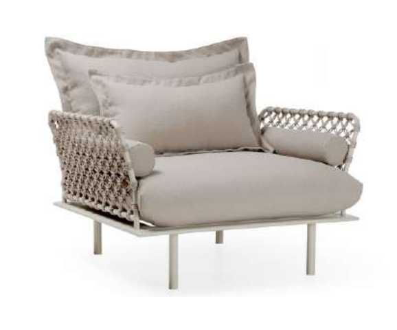 ESTRUTURA EM ALUMINIO PINTADO, ALMOFADAS SOLTAS. ACABAMENTO CORDA NAUTICA.