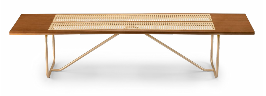 ESTRUTURA METALICA COM PINTURA E ASSENTO EM MADEIRA COM PALHA NO ASSENTO