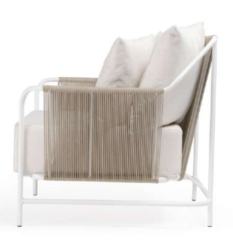 ESTRUTURA EM ALUMINIO, ACABAMENTO EM FIBRA SINTETICA, ALMOFADAS SOLTAS.
