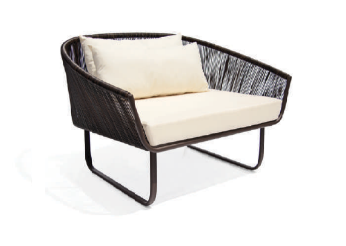 ESTRUTURA EM ALUMINIO PINTADO, ACABAMENTO FIBRA SINTETICA, ALMOFADAS TECIDO SOLTAS